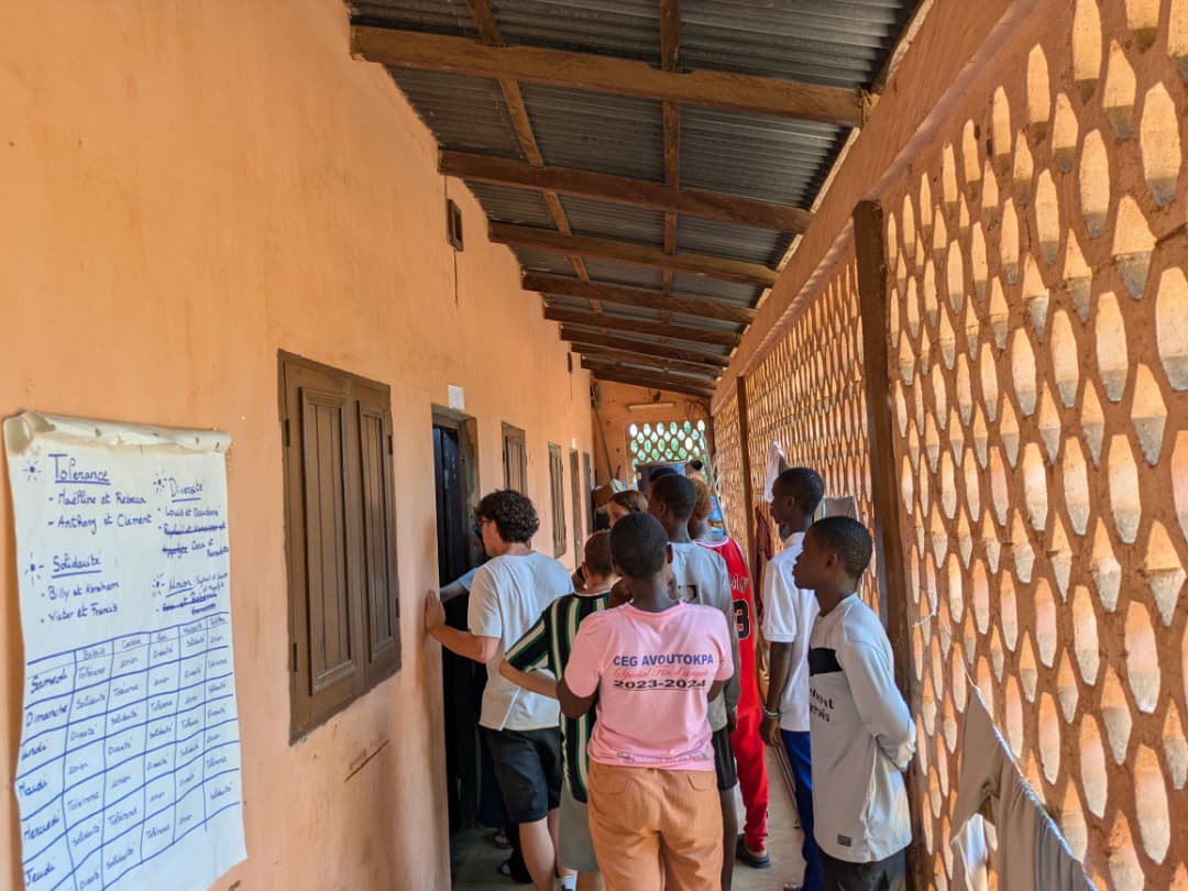 Pendant deux semaines, sept jeunes Français de l’Établissement Saint-Benoît d’Annecy et huit jeunes Togolais du Bureau National Catholique de l’Enfance (BNCE) ont participé à un chantier solidaire dans le village d’Avoutokpa. Ensemble, ils ont réhabilité la bibliothèque locale et partagé des ateliers autour de la citoyenneté, de la santé et de la protection de l’enfance.