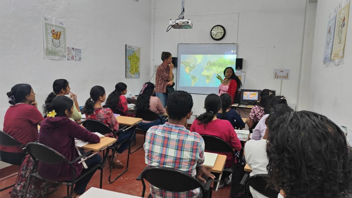 Tout au long du mois d’octobre, les Alliances françaises en Inde ont célébré le Mois de La Réunion, une programmation destinée à faire rayonner la richesse culturelle, artistique et linguistique de cette île de l’océan Indien. Initié par l’Alliance française de Pondichéry, les volontaires de solidarité internationale (VSI) Marion Sicard et Arnaud Rondeau, tous deux originaires de La Réunion, ont invité le public à découvrir une terre marquée par le métissage et les circulations culturelles.