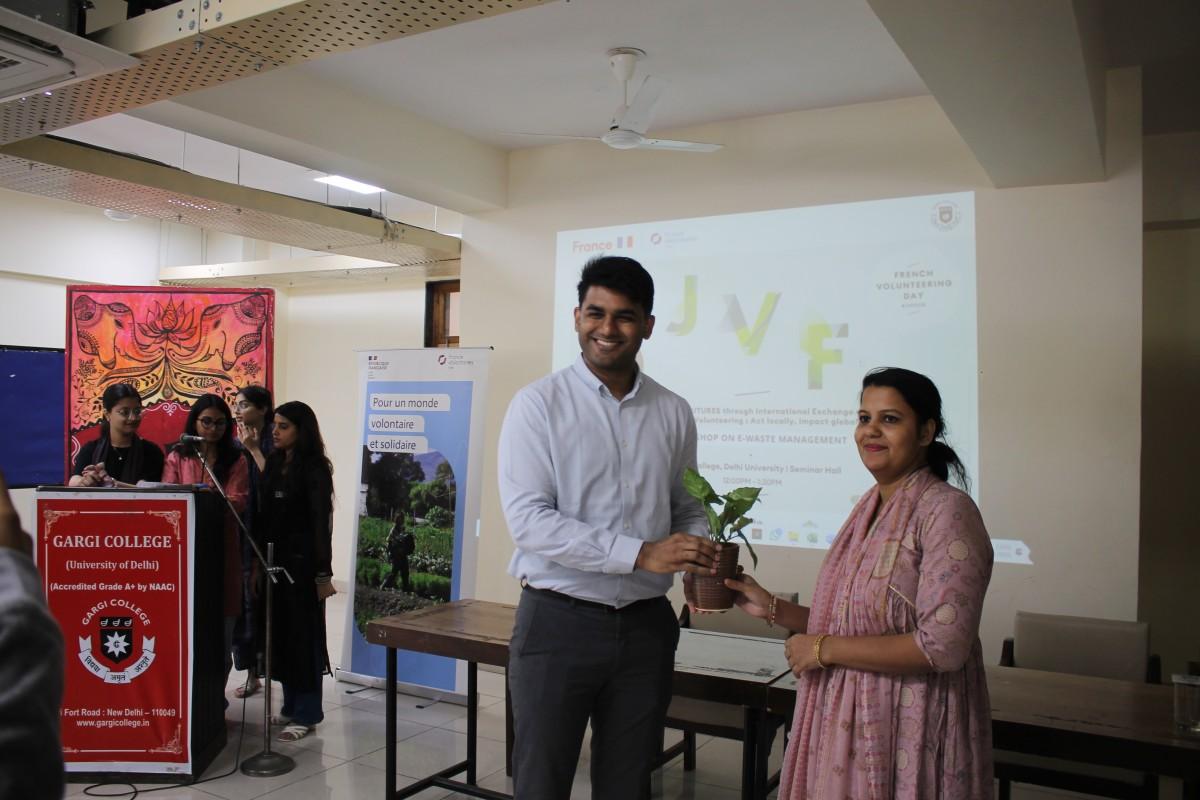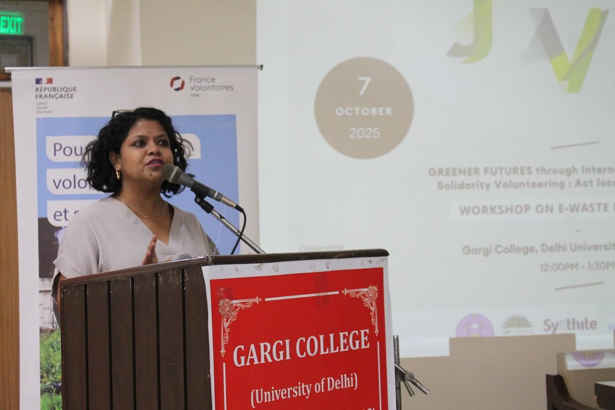Cette édition spéciale de la Journée du volontariat français (JVF) a débuté cette année par un atelier sur la gestion des déchets électroniques, organisé au Gargi College de l’Université de Delhi, en partenariat avec Bajaj Foundation. L’événement s’inscrit dans le cadre du Daan Utsav, la Semaine du don célébrée chaque année en octobre en Inde pour promouvoir la générosité et la solidarité.