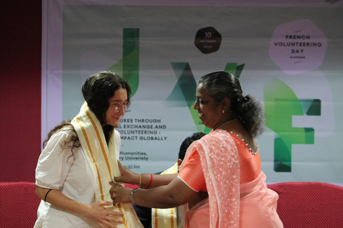 La cérémonie s’est ouverte avec un discours de Damien Syed, Ministre Conseiller à l’ambassade de France en Inde, qui a mis en avant le rôle clé des volontaires, dont l’engagement contribue à des changements positifs à l’échelle mondiale, et souligné que le volontariat international encourage la solidarité, la coopération et la responsabilité partagée. Des témoignages inspirants ont été partagés par Priya Bhasin, ancienne volontaire en Service Civique de réciprocité avec La Délégation Catholique pour la Coopération à Paris, et Léa Maury, actuellement Volontaire de Solidarité Internationale avec Life Project 4 Youth à Delhi. Leurs interventions ont confirmé les propos de Damien Syed, en soulignant la capacité du volontariat à créer des ponts entre les cultures, à renforcer l’empathie et à promouvoir une citoyenneté active.