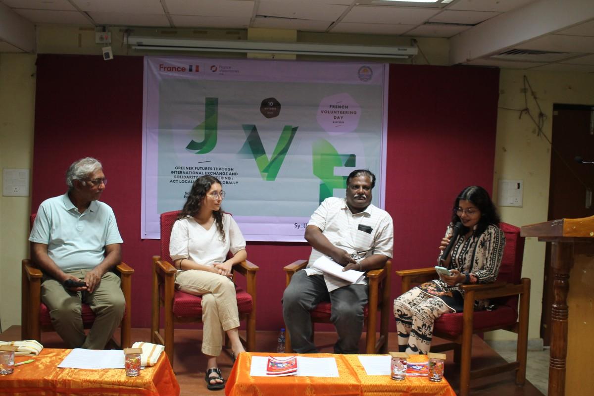 Tous les ans, au mois d’octobre, les Journées du volontariat français (JVF) permettent à France Volontaires de rassembler et d’impliquer les acteurs de la solidarité internationale, tant en France que dans ses pays partenaires. Pour l’édition 2025, l’équipe de France Volontaires Inde a organisé plusieurs temps forts sur trois jours, à Delhi et à Pondichéry, afin de sensibiliser le public à la contribution du volontariat international d'échanges et de solidarité (V.I.E.S) face aux enjeux environnementaux.