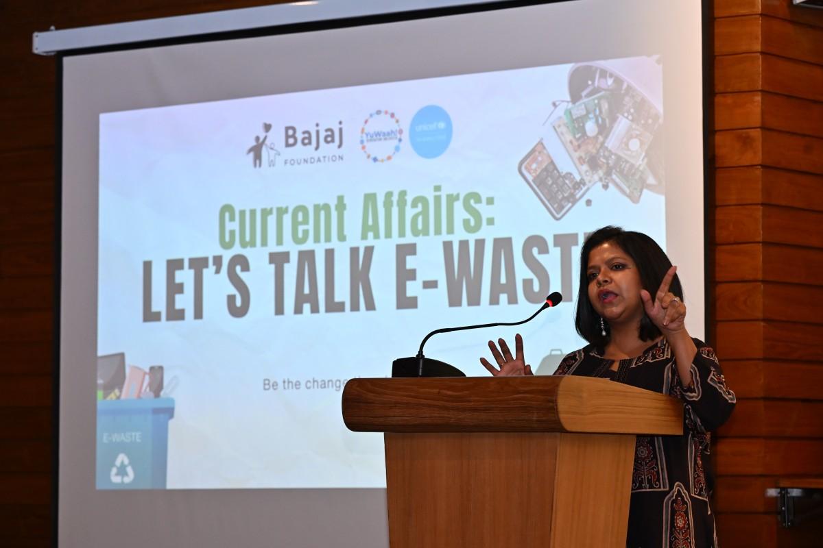 Shohini Dutta, directrice de la philanthropie à Bajaj Foundation, a partagé des conseils précieux sur la manière dont les étudiants peuvent contribuer à lutter contre la crise des déchets électroniques : sensibiliser leurs familles et communautés aux programmes de recyclage, organiser des collectes d’appareils usagés, promouvoir une utilisation responsable des équipements électroniques et soutenir des initiatives vertes telles que la réutilisation ou la remise à neuf des anciens appareils. La session a également inclus des échanges dynamiques avec les 130 étudiantes présentes, ainsi qu’un nukkad natak (théâtre de rue) présenté par Kshitij, The Streetplay Society, offrant une approche de sensibilisation ludique et engageante.