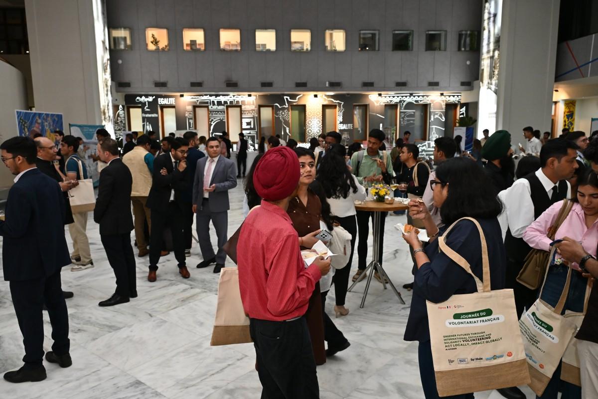 La deuxième étape de la JVF s’est poursuivie le 8 octobre à l’ambassade de France en Inde, réunissant les volontaires en mission en Inde, les alumni indiens de retour suite à leur volontariat en France, ainsi que des partenaires, des acteurs de la solidarité internationale, de l’engagement des jeunes et de nombreux étudiants.