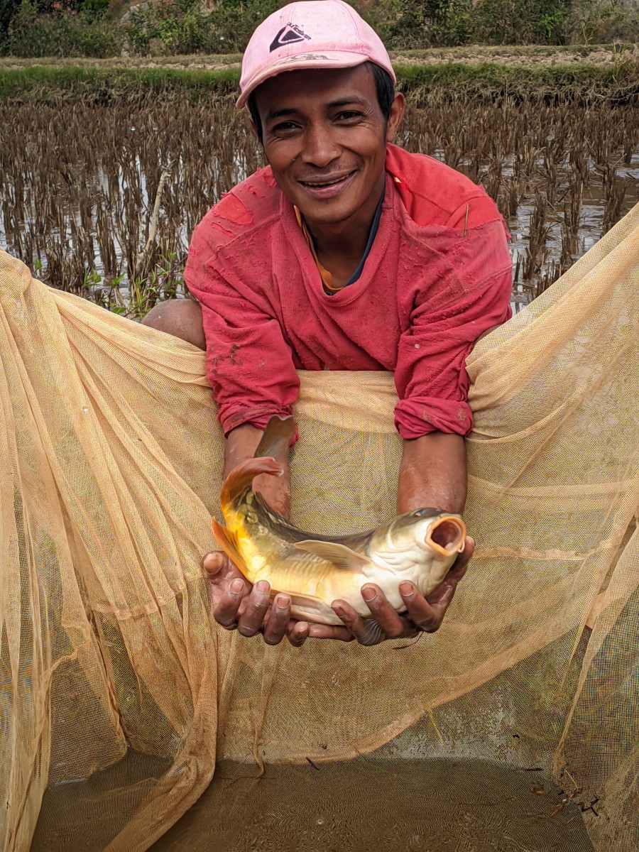 La viabilité économique de la pisciculture paysanne repose sur une production destinée aux marchés proches, où la demande reste forte. Face aux poissons importés principalement d’Asie, et souvent moins chers, les étangs paysans ne peuvent tenir que si leurs coûts d’exploitation restent très faibles. C’est précisément l’avantage d’un système fondé sur la la main-d’œuvre familiale et une gestion de l’eau adaptée aux rythmes agricoles. Selon Delphine, l’enjeu est de maintenir un système accessible : « Le ticket d’entrée doit être abordable, et la rémunération réelle doit être pour les producteurs. »